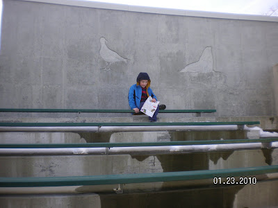 I don't think I've eveer been to the Buffalo zoo in the month of January....It was nice here so what the heck we went. After that real bad cold spell the 40's seem balmy. OK not really....Andrew wanted to see how the polar bears were liking the weather. He was disappointed he wasn't swimming but his swimming hole was iced over pretty good.....