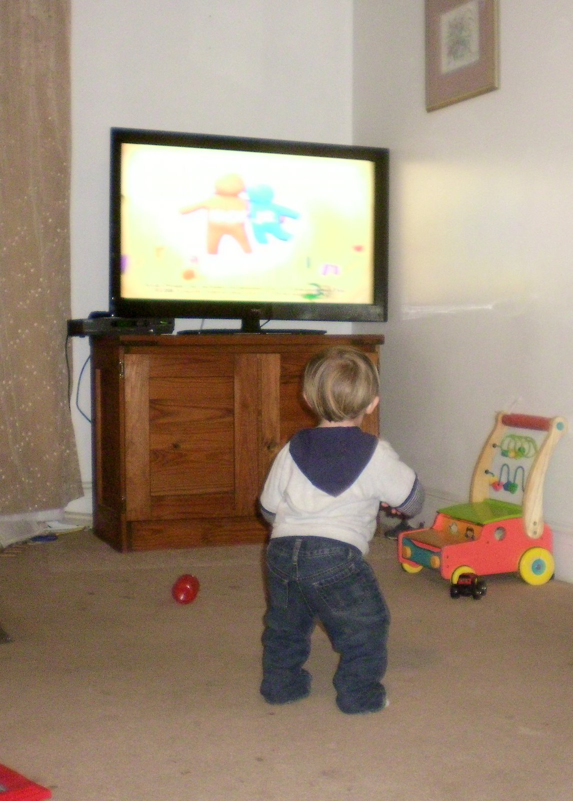 I wanted a big screen TV and although Jonathan was not happy about the change as he could change the channels on the other TV . Just try to change Nick jr off this TV. Apparently he thinks I bought it for him. I put it on the news on night and he threw one of his cars at it. Considering I don't watch much TV at night and if I do I don't watch it here... Oh well, everybody else is enjoying it.