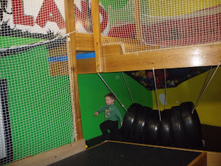 Thing didn't go great here . Jonathan whom was very excited to go in the bounce was really not suppose to be but since the "powers that be" weren't standing over me and I didn' t think it was fair that Andrew and all the other kids were allowed and Jonathan wasn't, made sure he got to enjoy some time in there. We left soon after. Neither cared. Andrew had a new game to try out and Jonathan was tired and didn't know what he was missing anyway. After all he had enough candy