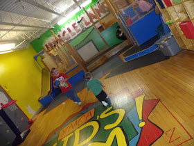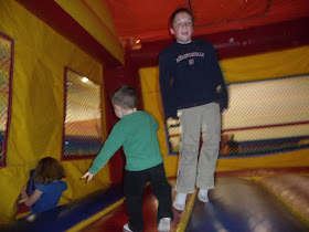 Thing didn't go great here . Jonathan whom was very excited to go in the bounce was really not suppose to be but since the "powers that be" weren't standing over me and I didn' t think it was fair that Andrew and all the other kids were allowed and Jonathan wasn't, made sure he got to enjoy some time in there. We left soon after. Neither cared. Andrew had a new game to try out and Jonathan was tired and didn't know what he was missing anyway. After all he had enough candy