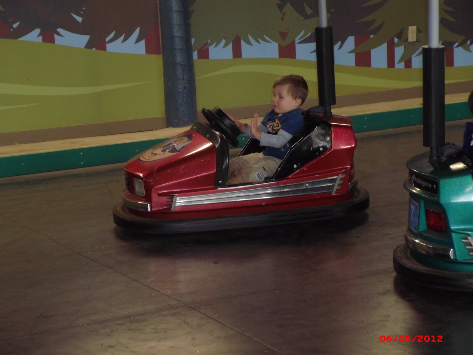 It was rainy and there wasn't much to do. Spent a few hours getting new tires put on the car. Jonathan loved that since he loves seeing all the parts of the car. He also LOVES the bumper cars as he can drive them and wishes they had a horn