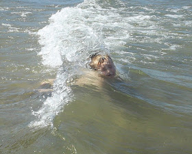 Since it was cooler, we went to Grandma's and Grandpa's to swim..(I didn't)