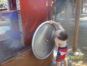 It was hot today so we went to Darien Lake to cool off. Somewhere in that mob was Andrew and they were waiting for the big bucket of water to fall on them