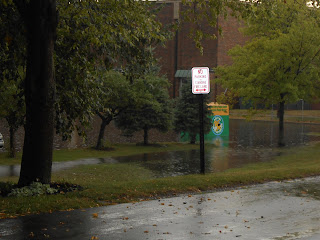 And boy did it for a good hour of nonstop rain... The library parking lot was a pond