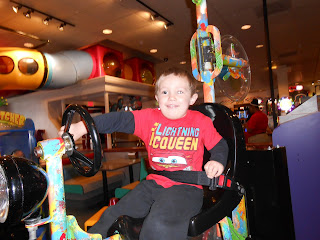 A day without brother. Grandma and Grandpa took Andrew and had him do fun things this afternoon so we took Jonathan to Chuck E Cheese. More often than not Jonathan is with us and we don't go anywhere without Andrew so today Jonathan got to be the "only "child and have some fun without his brother tagging along.
