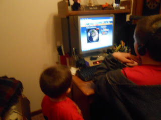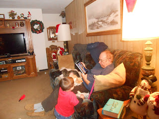 Jonathan tickling grandpa....grandpa playing "words with friends" AGAIN
