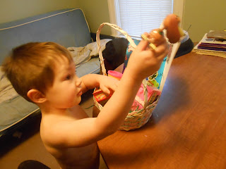 Jonathan was happy with his basket of play- doh and candy.