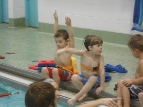 Finally he's at the age where mommy doesn't have to join in and he can learn to swim.
