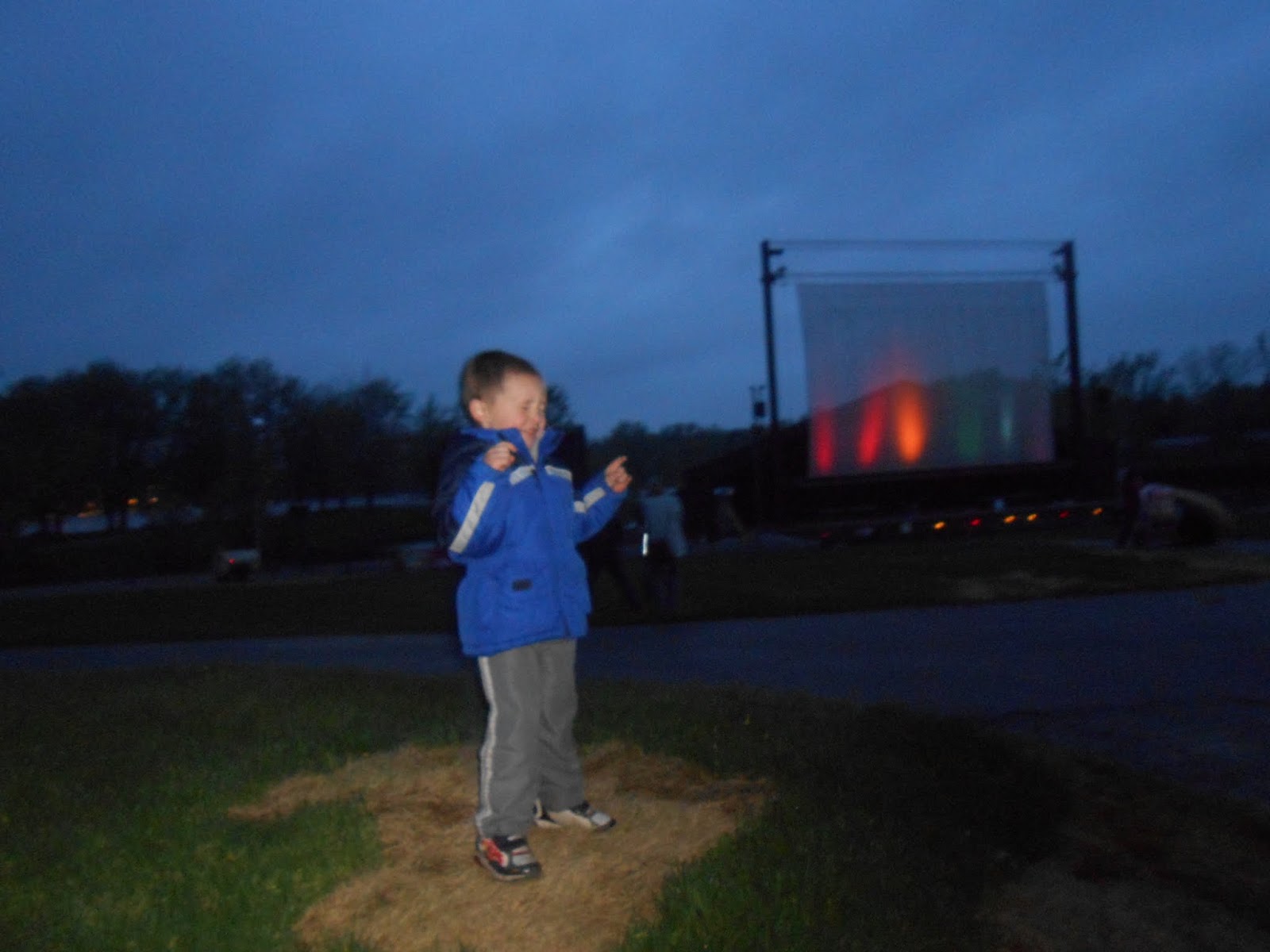 Almost time for the show to start. Jonathan was dancing. I tried taping it but it was too dark to see him. He was dancing to the music here as Andrew was going on the roller coaster one last time.