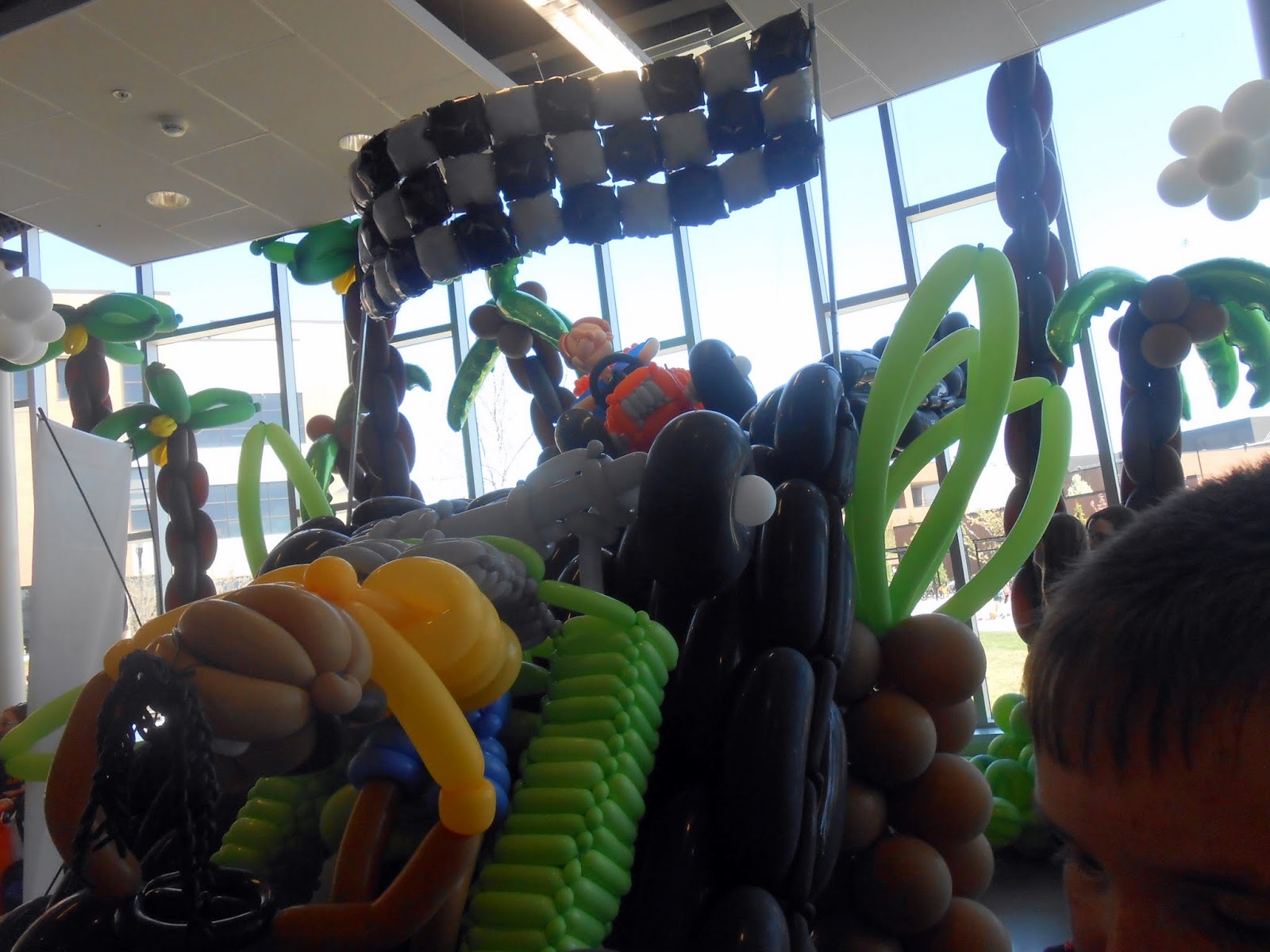 one of my favorite things to see there are the balloon sculptures and to see what ceation they made this year. Race cars! Jonathan liked that one!