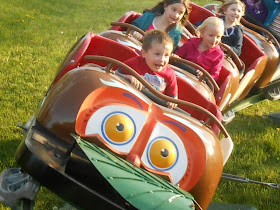 Roller Coasters and Moose on the Loose. Love it so close we can get a few hours in after work. Jonathan has a huge sore on his face from falling on the back steps. Its been awhile since his face looks that bad.