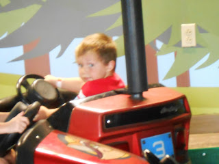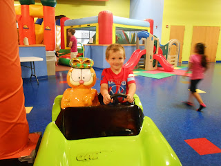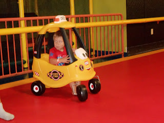 I asked Jonathan what he wanted to do today and Kango Play Center was the place he wanted to go. They had this new car there and was very happy to sit in it a lot.