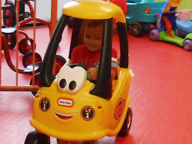 I asked Jonathan what he wanted to do today and Kango Play Center was the place he wanted to go. They had this new car there and was very happy to sit in it a lot.