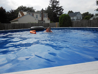 Andrew(lobster boy) and Tanner(vampire) wrestling in the pool. Ha ha! Tanner is vampire since he is keeping vampire hours and therefore white.