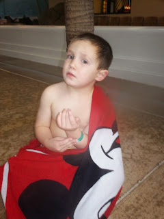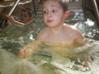 Brrr it was cold out today so we pretended it was warm and soaked in the hot tub. Again Andrew was off doing other activities. This time with Grandma and Grandpa to watch the movie Thor.