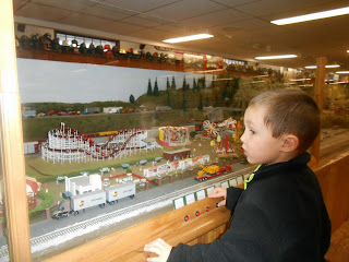 Andrew was gone to watch a play for a few hours which left us some time to do something by ourselves . Took Jonathan to look at the railroad museum and to see the model trains