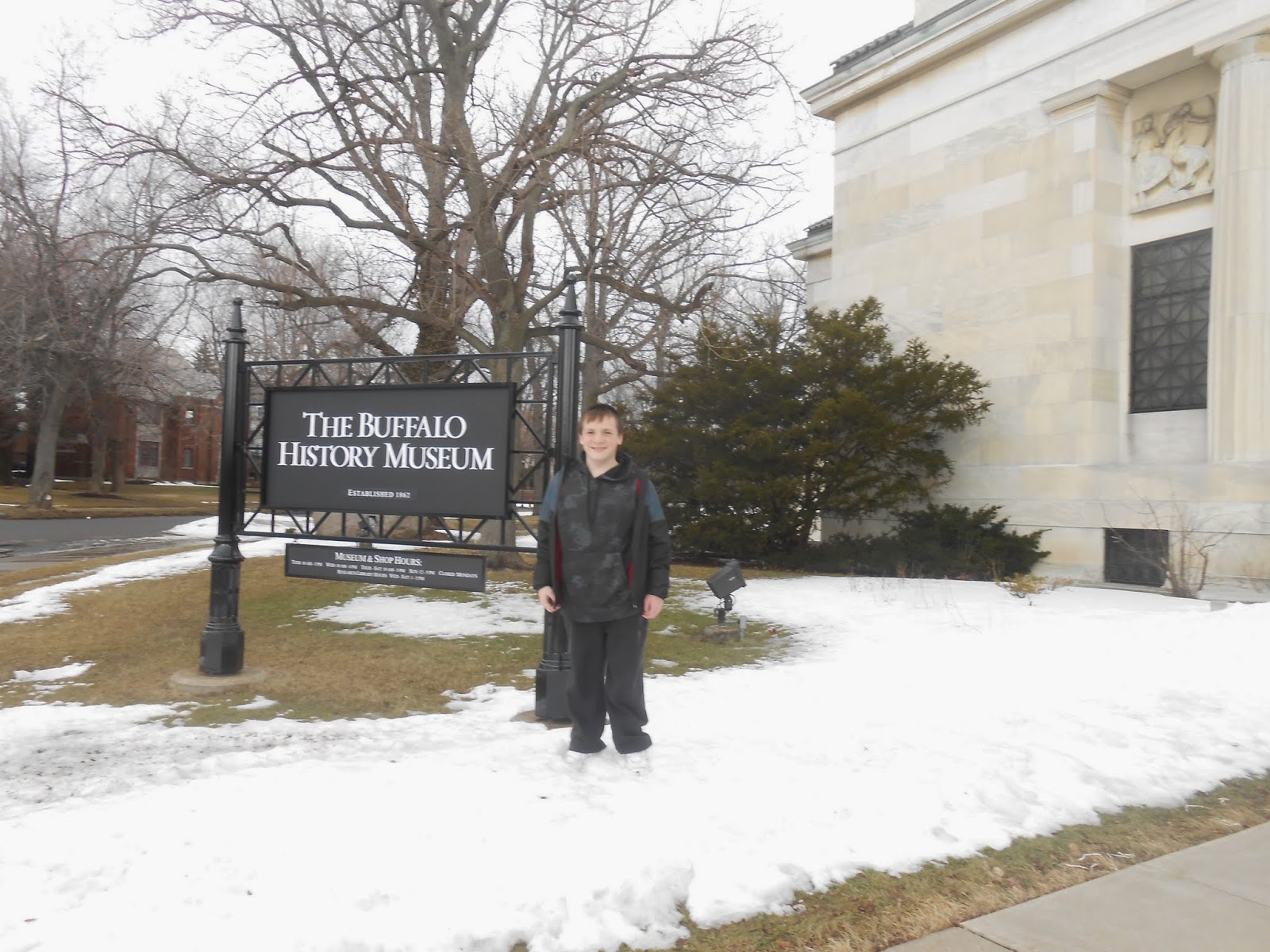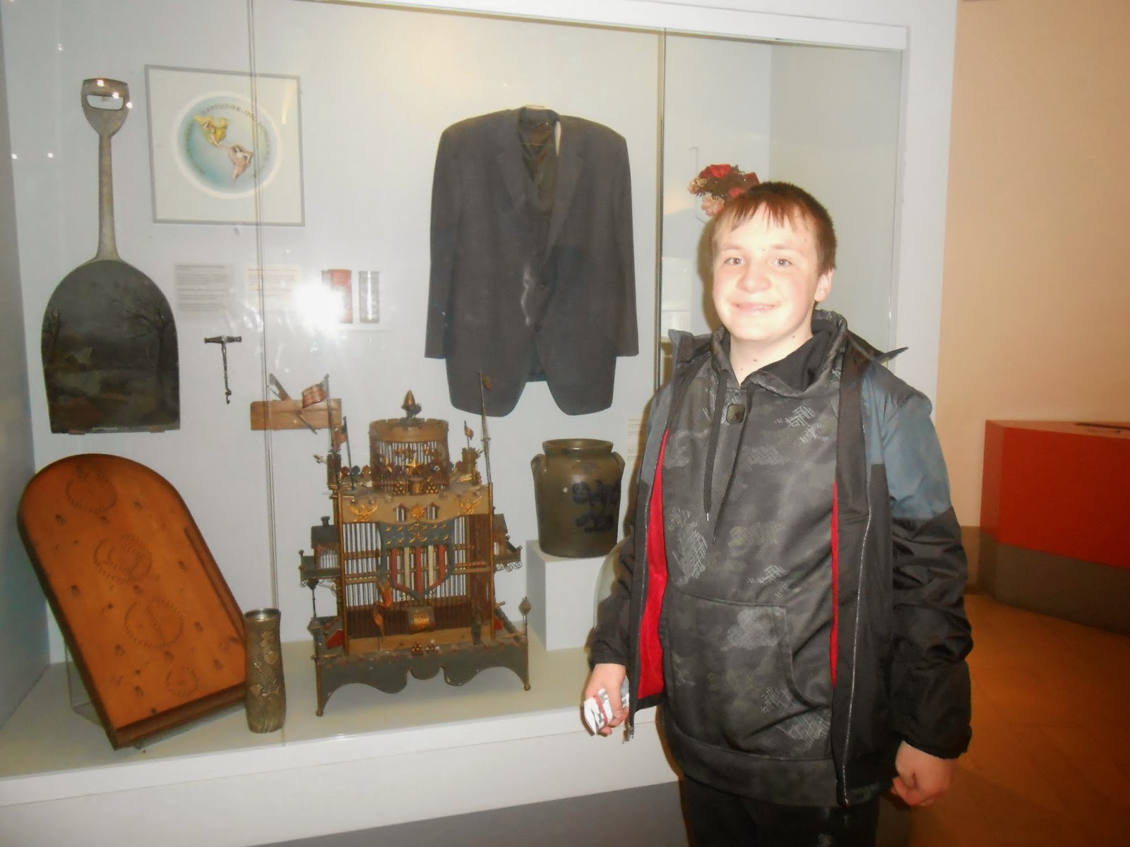 Buffalo Sabres exhibit. Andrew looking at the newpaper about Tim Horton....