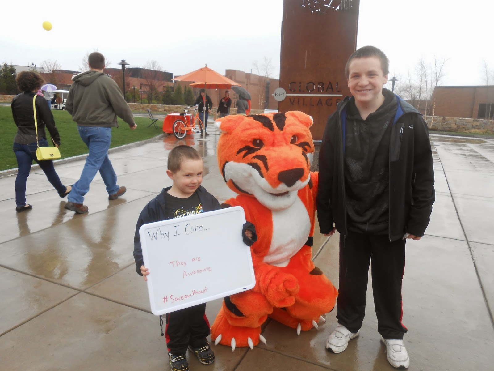 Jonathan would not get his picture taken with the Tiger but when he gave Andrew a candy necklace....... Jonathan suddenly loved the Tiger and he WAS awesome!