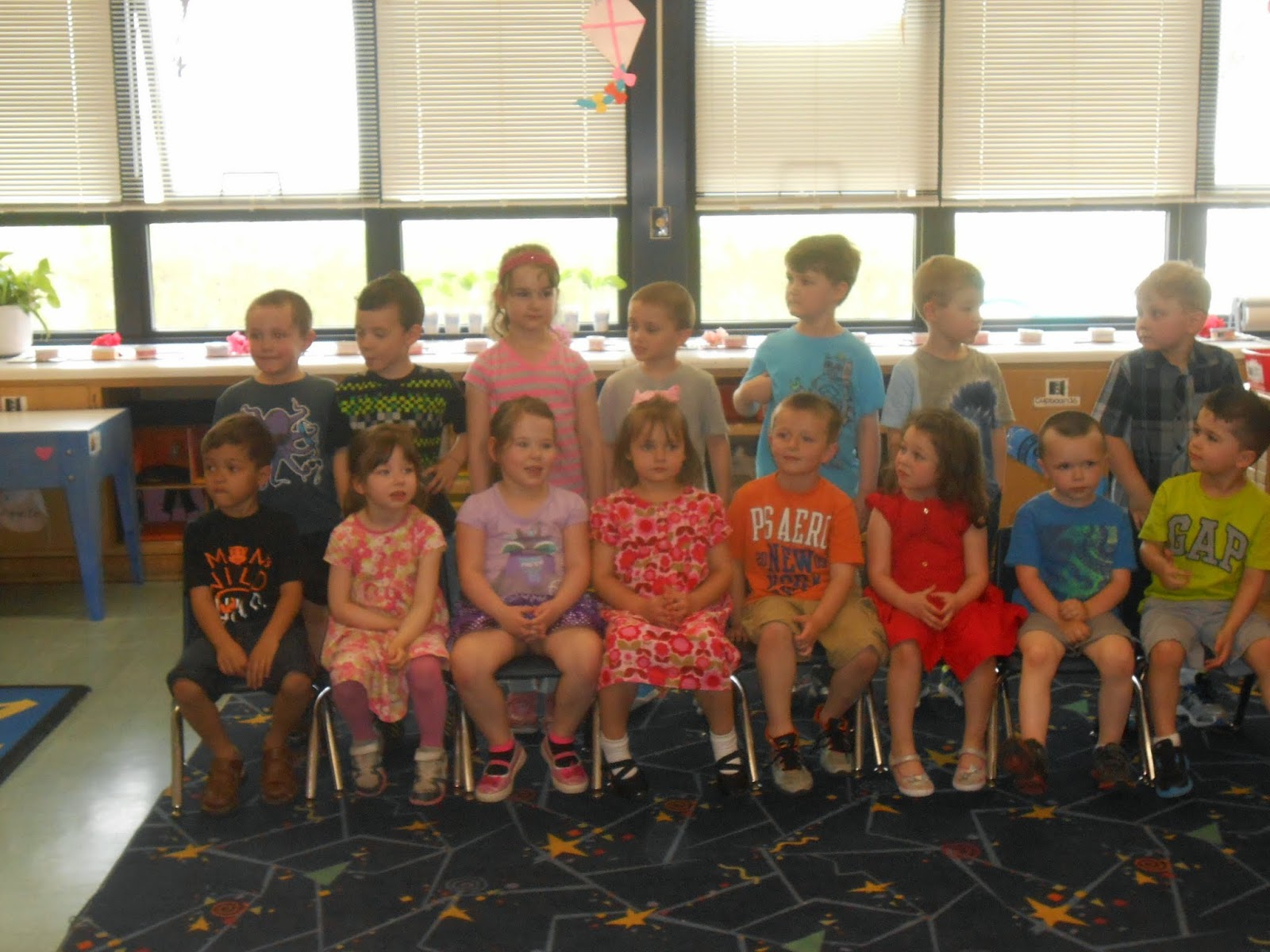 Jonathan is standing by his picture that he drew of me (flowers) The top of the board says