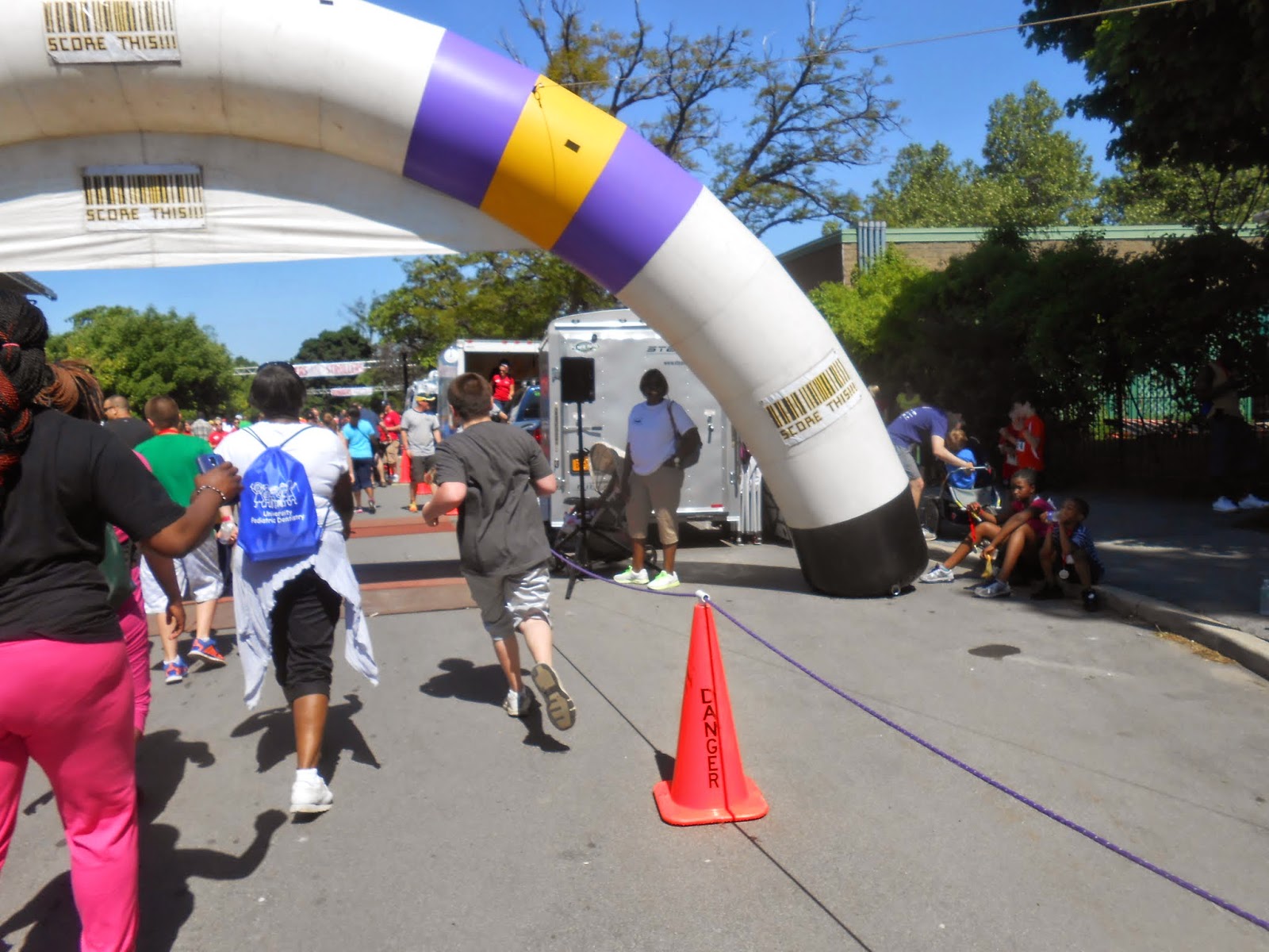 This year Jonathan went with Daddy, and it was only Andrew and I that did this one. So much better!! I carried Jonathan almost the entire time. and half way through they ran out of water and Jonathan had to go to the bathroom. We cheated and cut up the middle of the course . I think we beat our time this year. This time however we walked to the car and came back and they had already started. We were just about/ if not the very last ones to go so this time should probably is about 10 minutes off