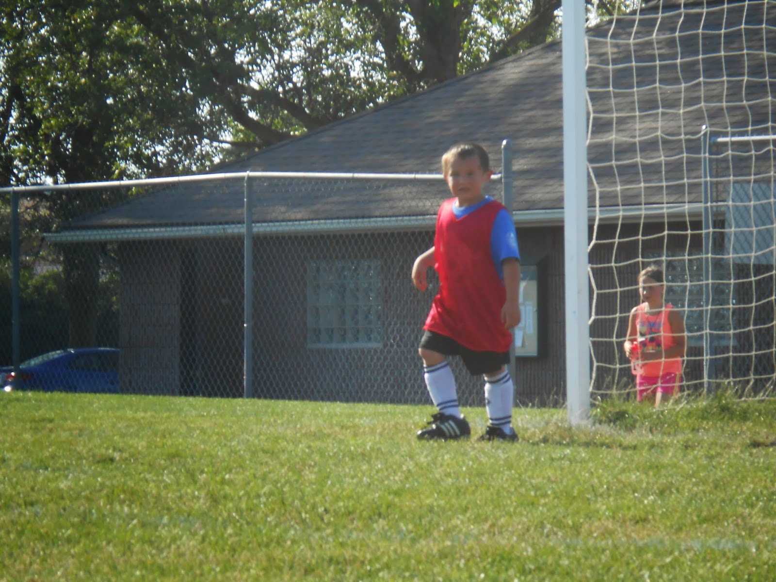 Session 2 of soccer started. You can see this time it wasn't a fight. He was loving it!! Scored a goal tonight!