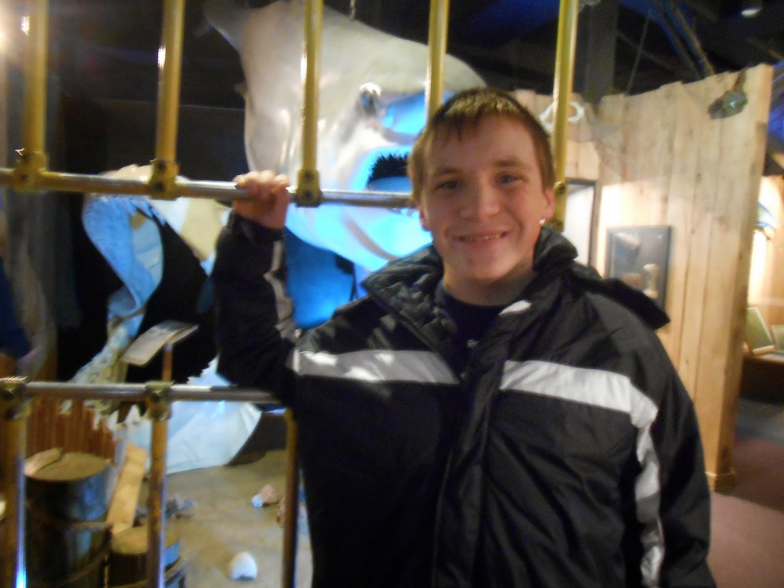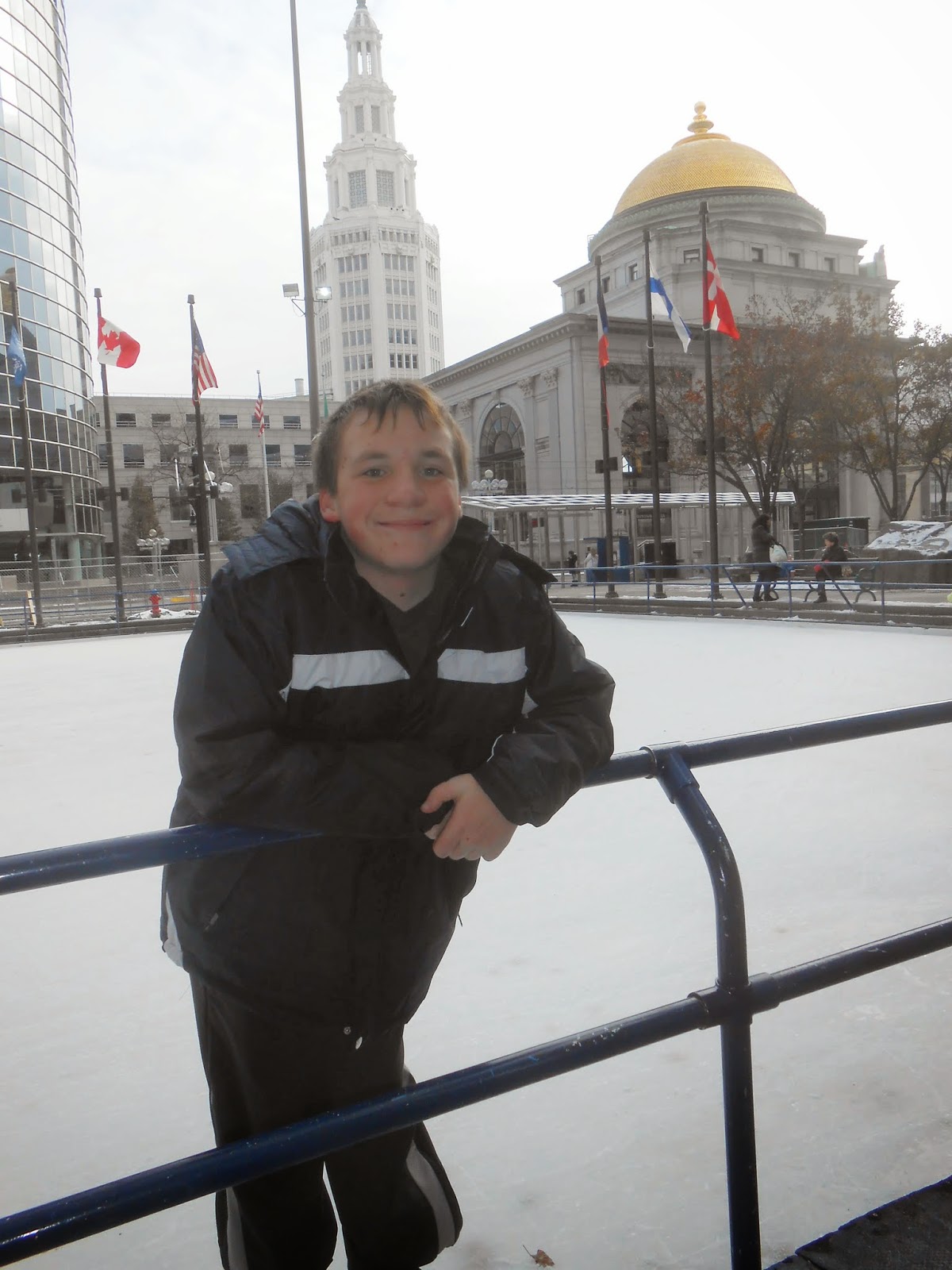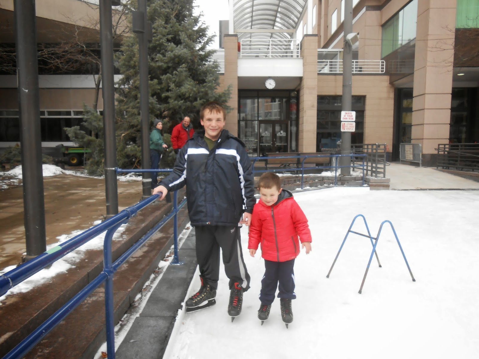 Look whom I got to go ice skating! He has always told me no he wouldn't do it but they had these things to help him and he decided to try it. Then when he did get out there he didn't get far with them.