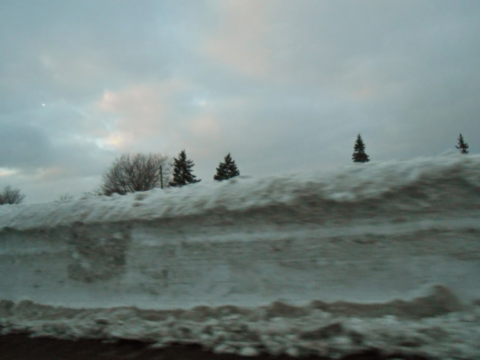 The snow on the sides of the road were getting higher and higher.
