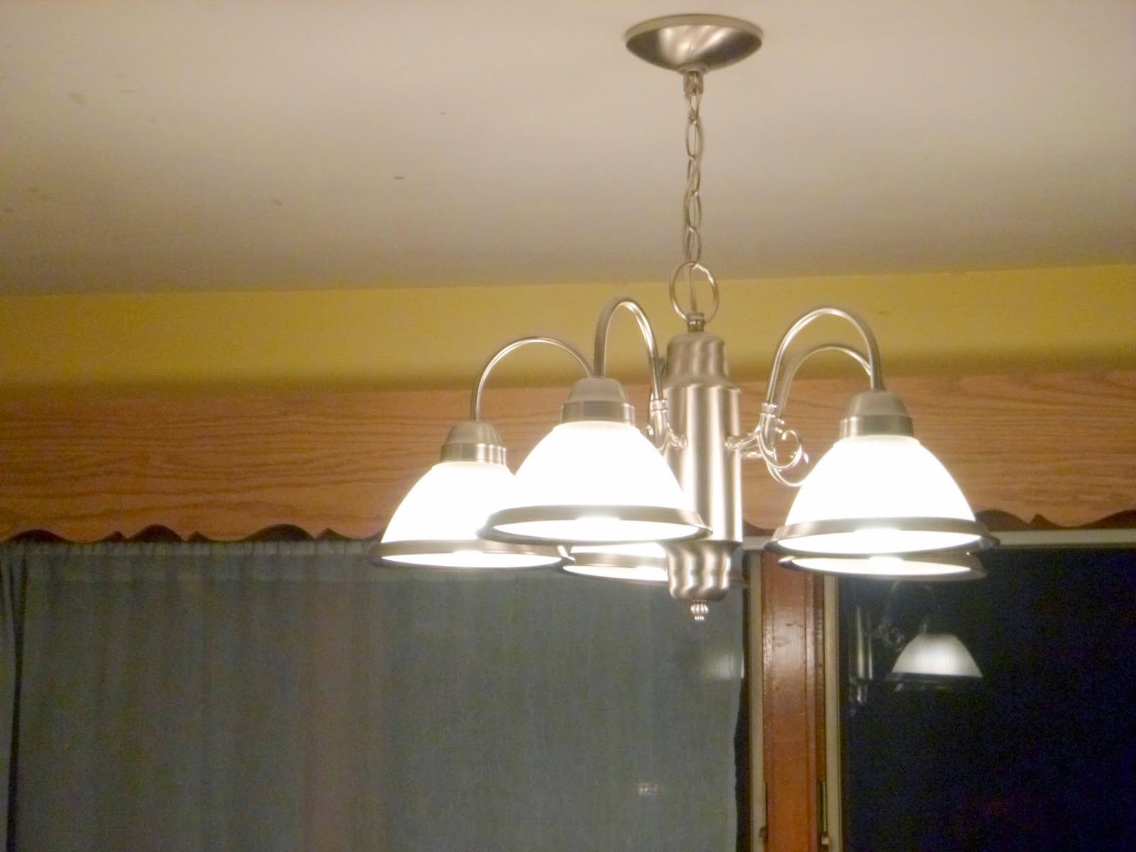 Couldn't take it anymore....the Bubble light fixture in my kitchen. Looked very 80's ish. Kids even broke one of the lights on it so it was time to go.