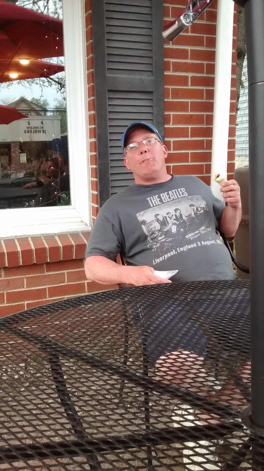 Another day with RECORD high temp. 90 degress.............Cooling of with some ice cream. Jonathan was with us but didn't want ice cream