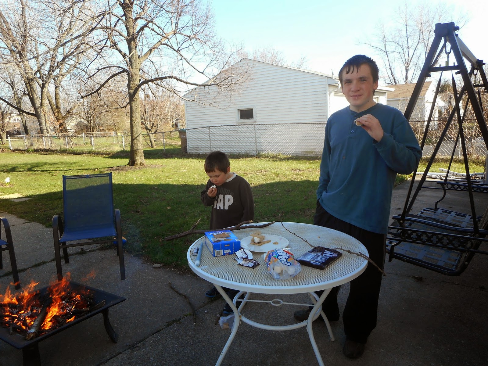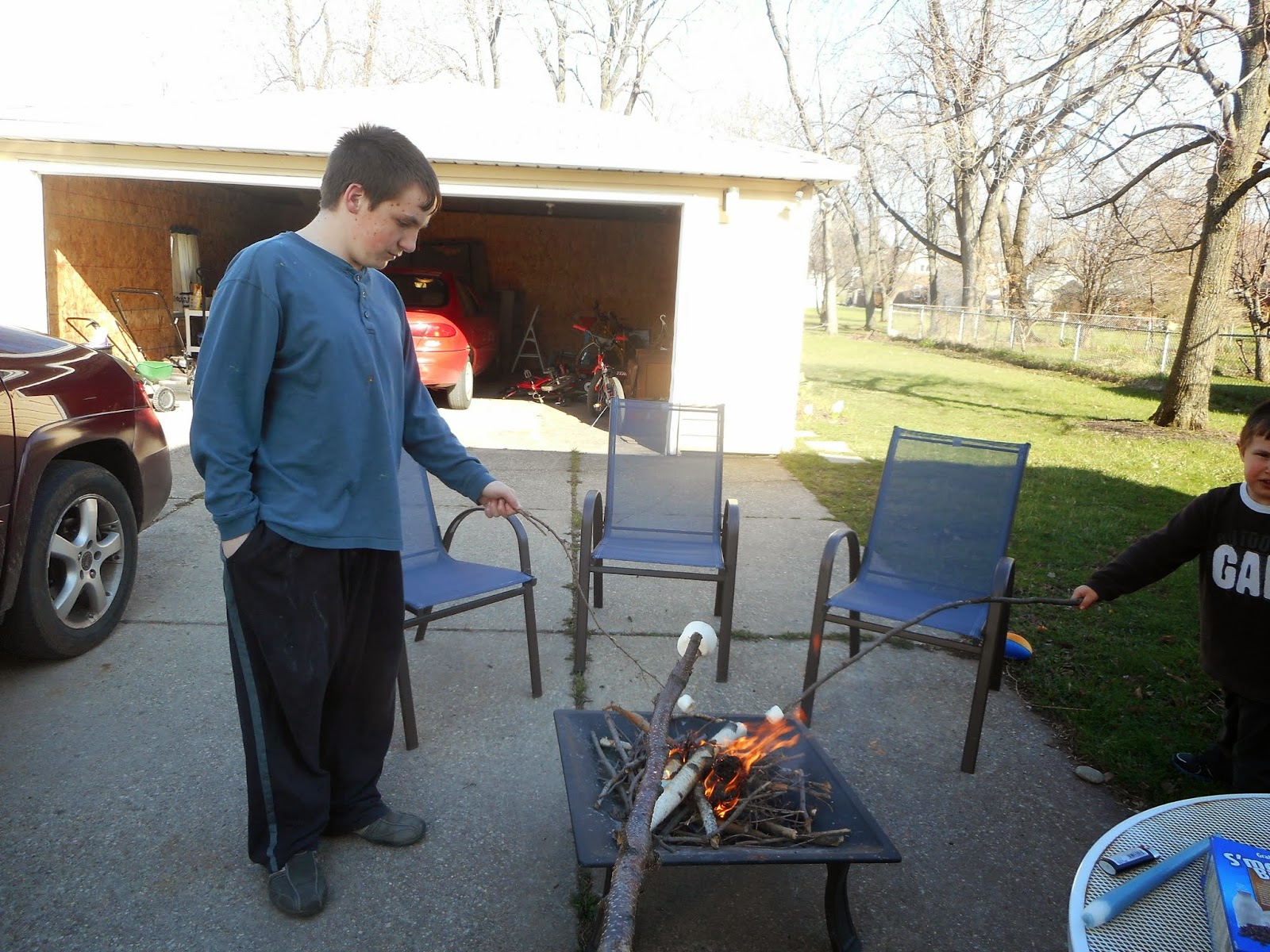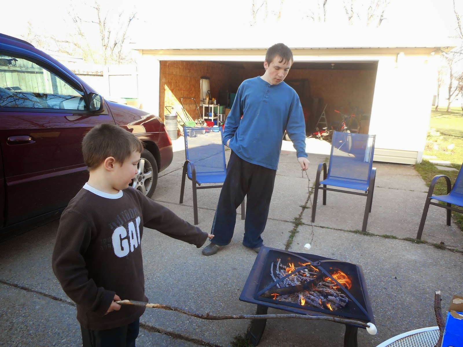So this was earlier in the week . We had the supplies and they talked me into making a fire and snacking on smores.