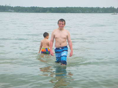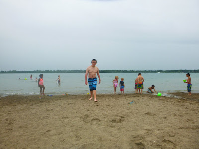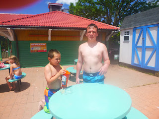 So it did rain while we were at the beach and we came home for awhile. I decided that they still needed something to do and took them over to the park. The water part was open and Jonathan jumped right in.....