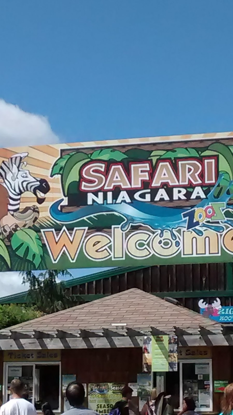 Riding the tram cars to see the animals. You could walk and get a better look but this was more fun!