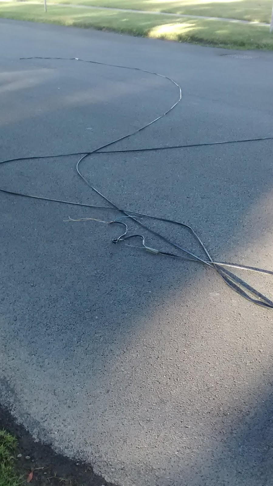 So we woke up one morning to see this in the front yard. Well we had power and cable (thank god!) but this was not good. Don't have phone service so I figured it was theirs. Had to call the phone company to fix it
