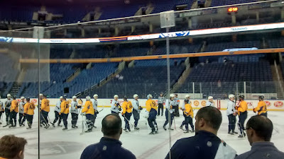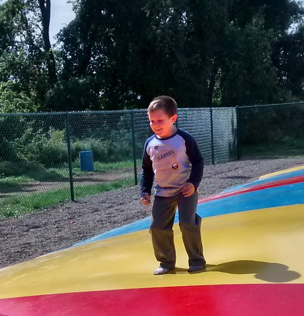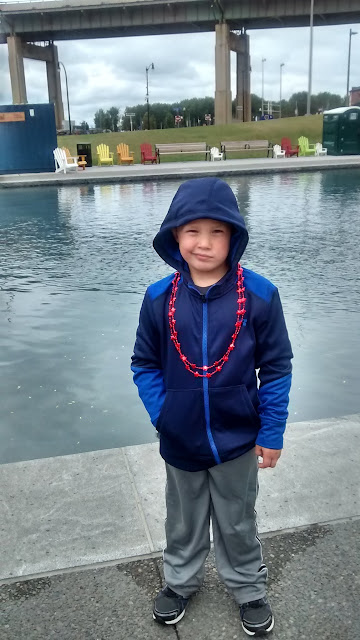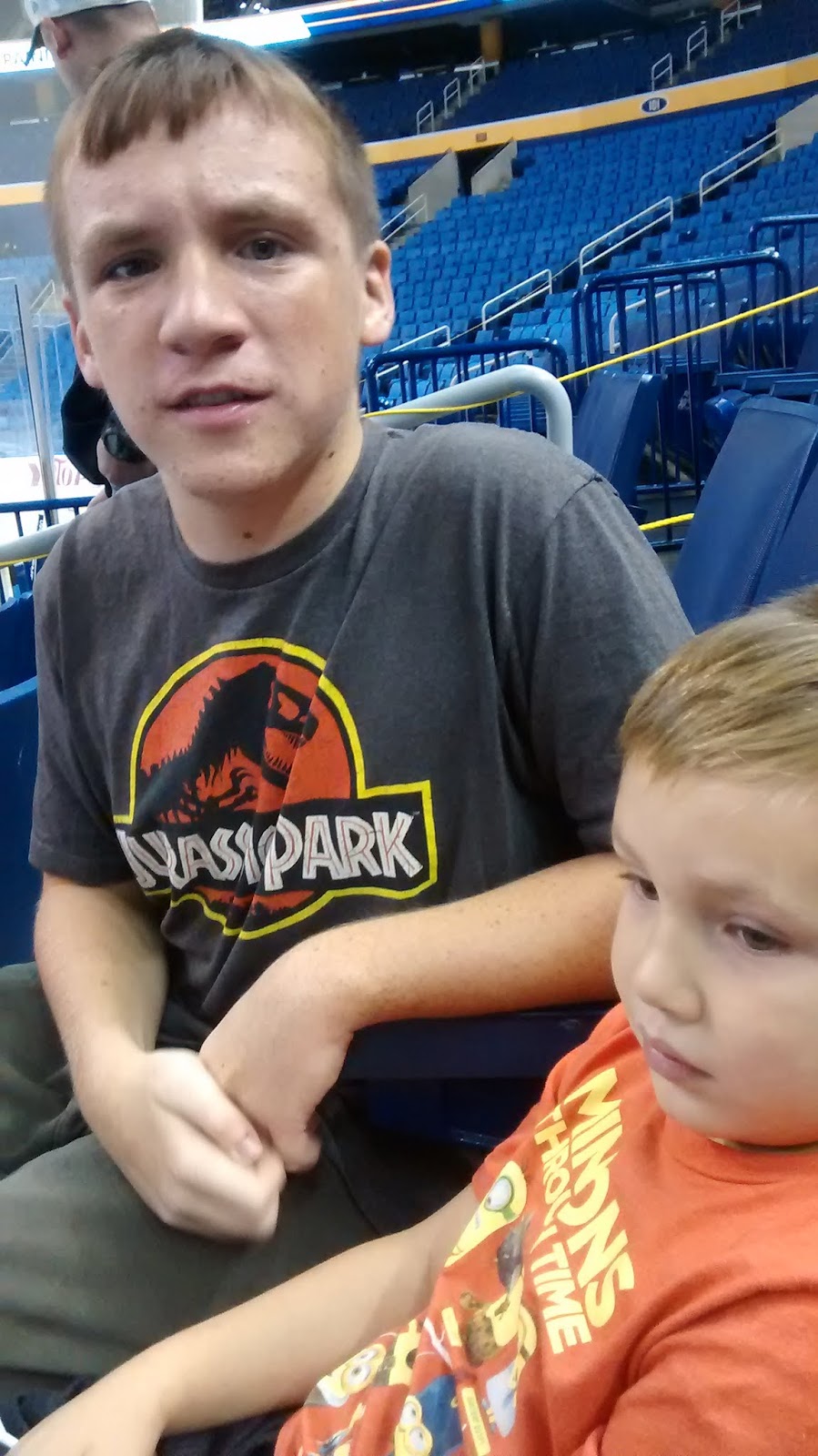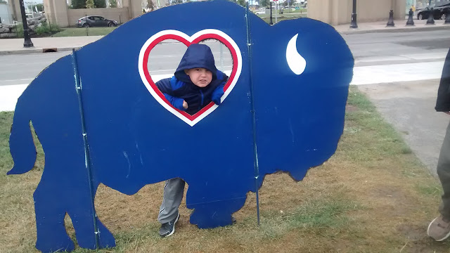 Because we were parked near there Jonathan wanted to play in the sand. We also got a few items at the Sabres store like Jonathan's new hat.