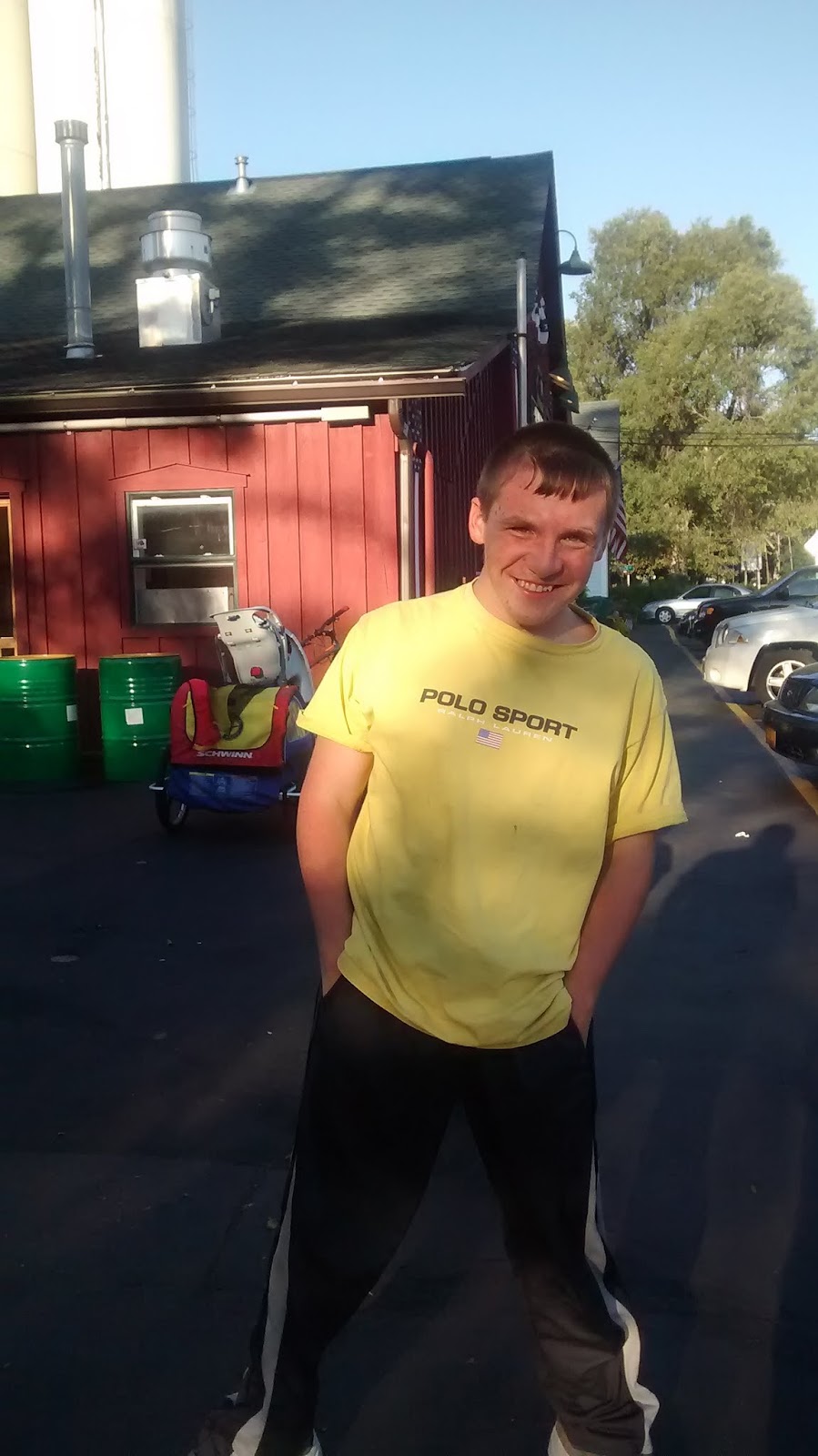 Eat Andrew...EAT!!! Andrew ate 5 (1st place ate 10 and 2nd ate 6) So there was a tie with the guy pictured below. The guy is literally twice his age and weighs 100 lbs more that him. Fastest one wins .......
