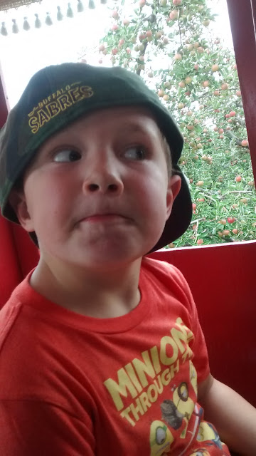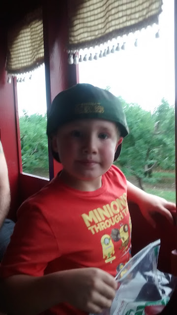 It was cloudy and they expected rain and weren't going to do the last "train" to apple pick but the rain held off and we were able to do it.