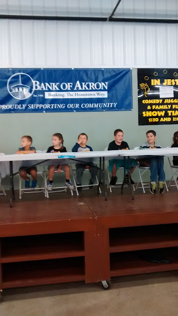 Andrew was too big to do the kids and did want the challenge of doing the adults. For the kids, they eat one piece of pie as fast as they can. For adults its whom ever eats the most in 5 minutes. Here's my 13 yr old taking on some big guys (not in this picture)