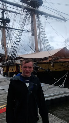 it rained all of Saturday so Sunday we went down to see the USS Brigs. We have been on it before but wanted to see it. It was still cold and wet but still had fun checking things out.