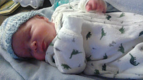 He's tried  his thumb but its too small for him to sooth himself with. He will also pull out the pacifer if he doesn't want it and tries to hold the bottle. For a newborn that's pretty good, no wonder this kid kept us guessing whether he would be breech or not. The last week he was born he was head up Tuesday, Head down Wednesday (per the sonogram) and back to being head up the day he was born.