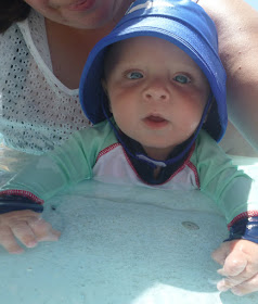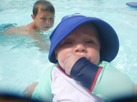 I love the water. I love that he kicks his feet like he's really swimming. only problem , he wants to put his face in and then he gets mad. Maybe an Olympic swimmer when he gets older......