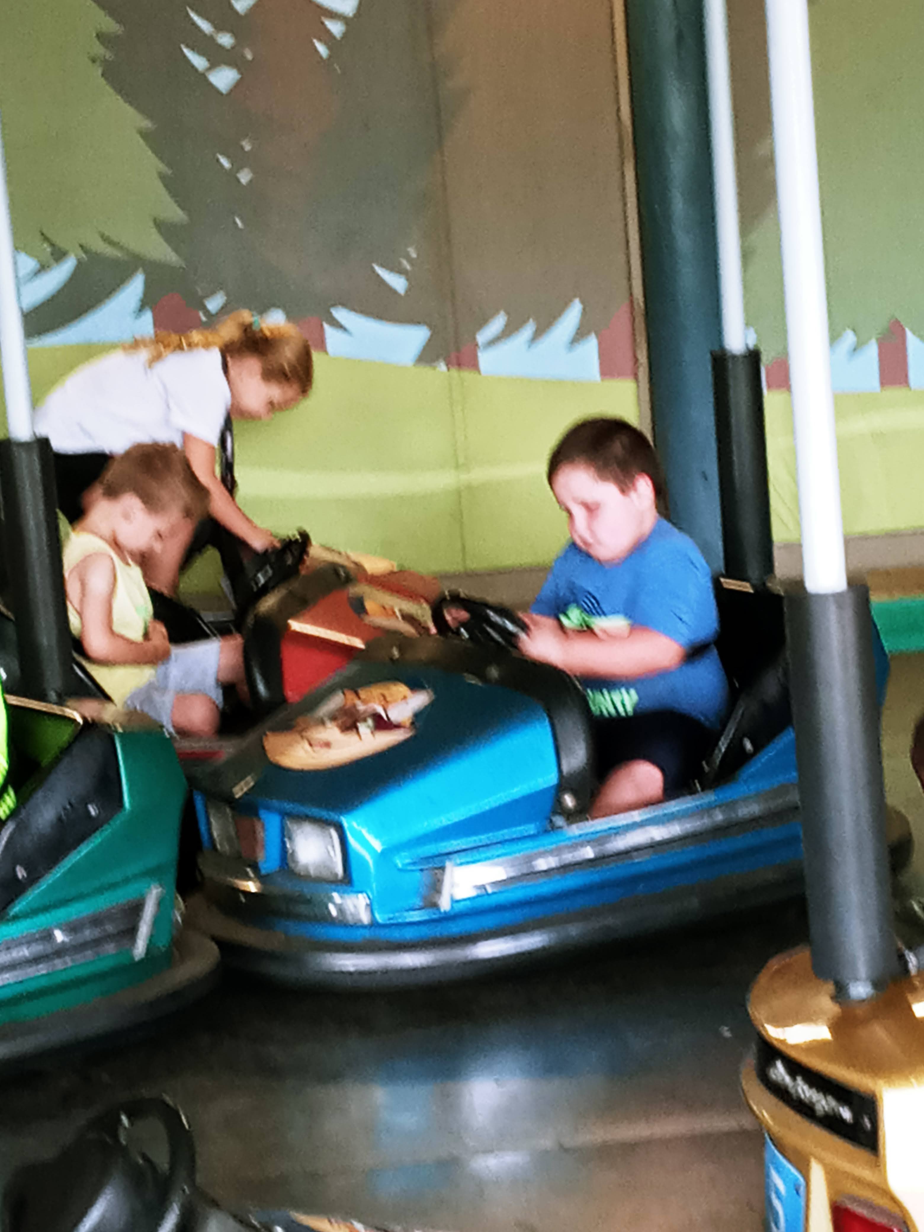 I'm not use to Alex going on rides like this alone. We usually have amusement park passes but the last year we did, he liked going to the houses and is mad we haven't gone back there. Sorry buddy Fantasy Island is closed but they are trying to get it reopened as something else and I don't know if they will have the houses anymore. Anywat first time on the roller coaster and bumper cars. He did great with both.