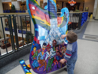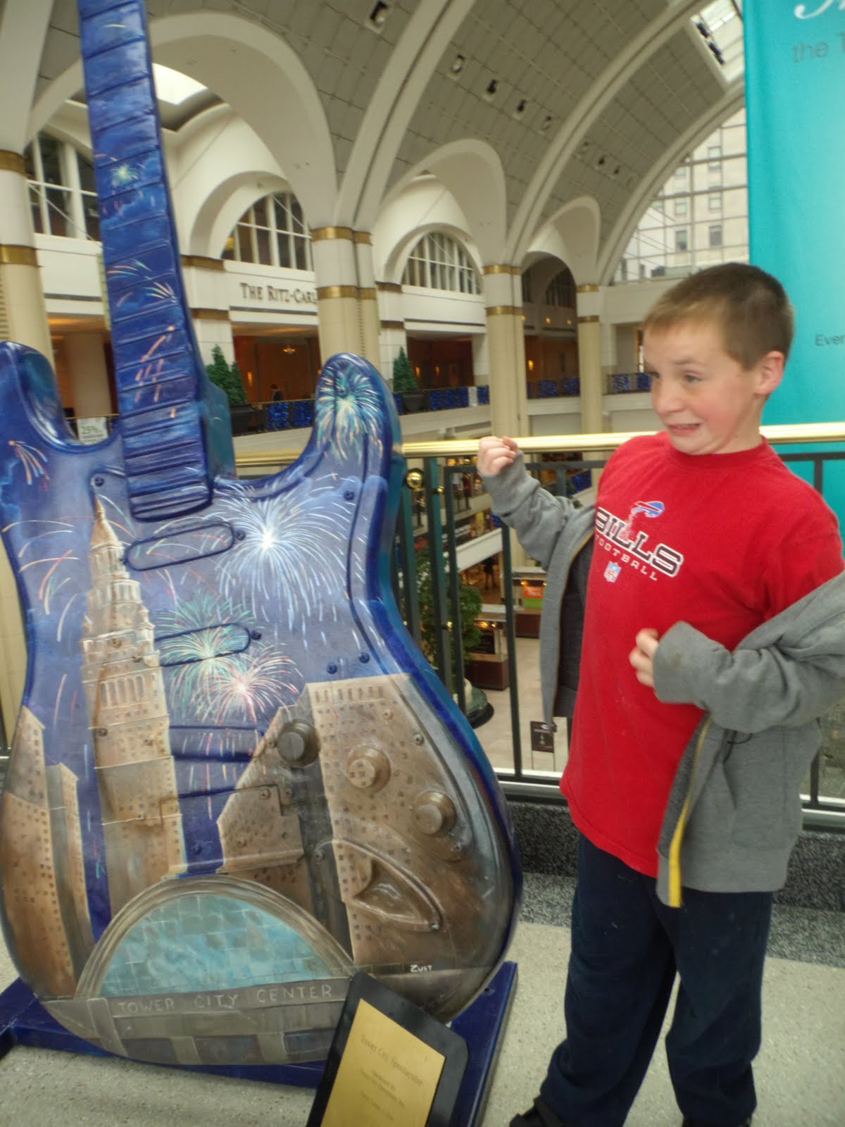 We went to Tower City and had Supper at the Hard Rock Cafe. THey have guitars throught the city so they stopped to check them out.