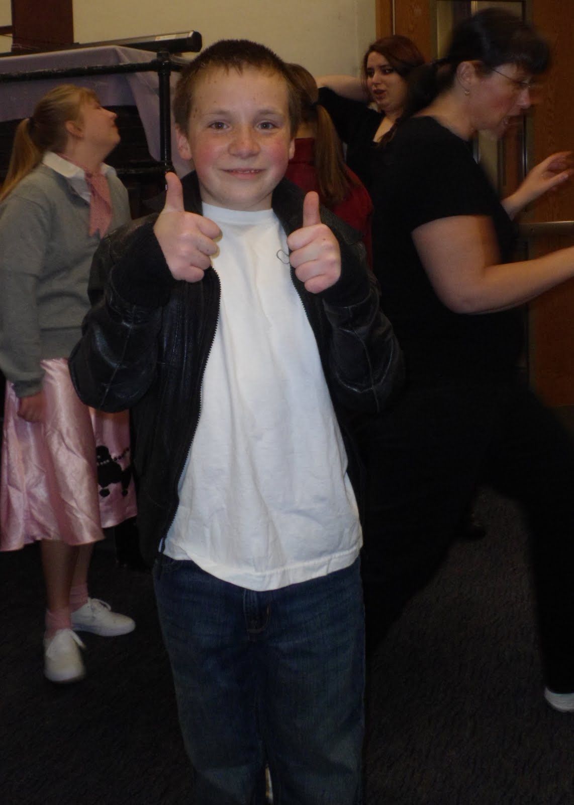 After all the dance classes he performed on stage . It was a 50's theme and he looked the part