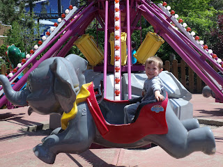 I got mostly pictures of Jonathan. He was loving life on the kiddie rides. He especially loved this one and riding the elephant on it.