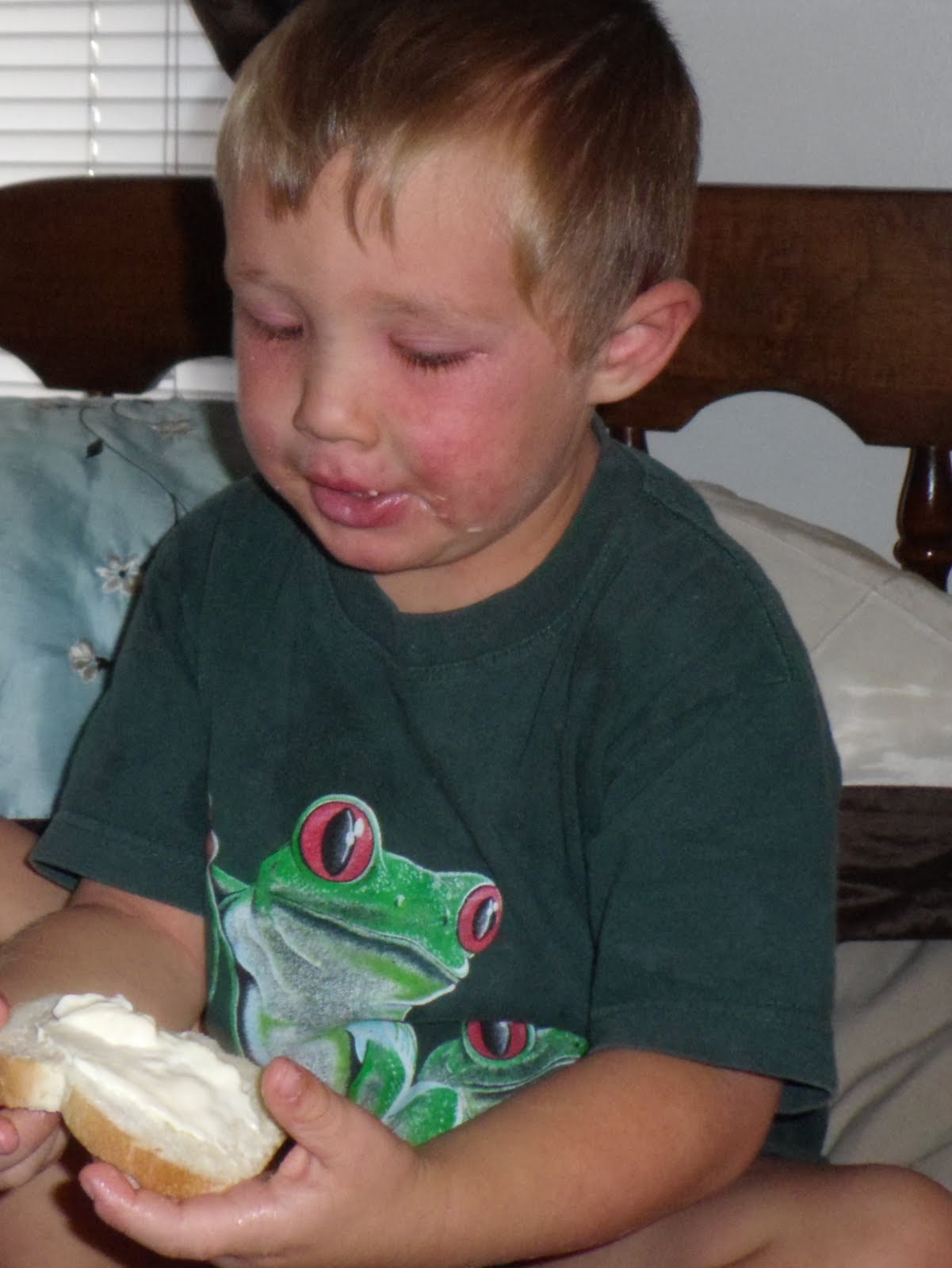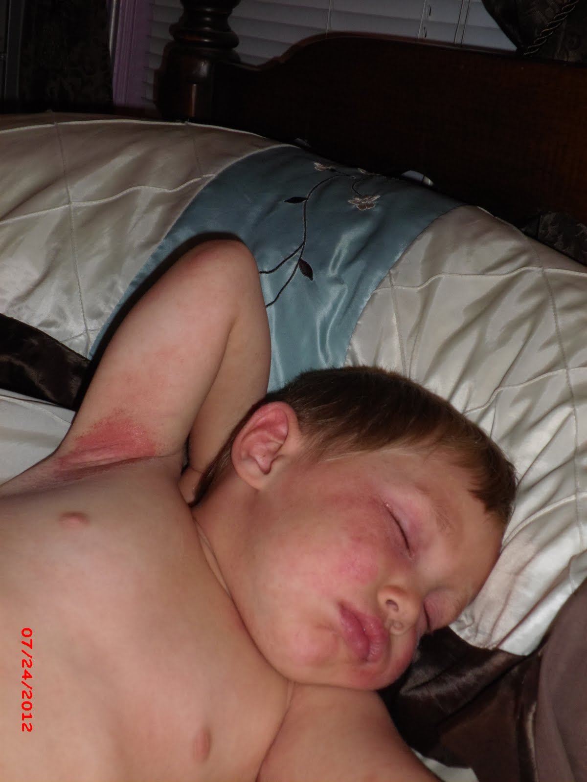 This was Jonathan this morning ......his eyes were swolen and the rash that was on his arm pits and down his arms now were all over his body...Would have waited till Monday BUT he had rubbed his eyes to the point they wer enow infected and he was extremely sensitive to temperatures.
