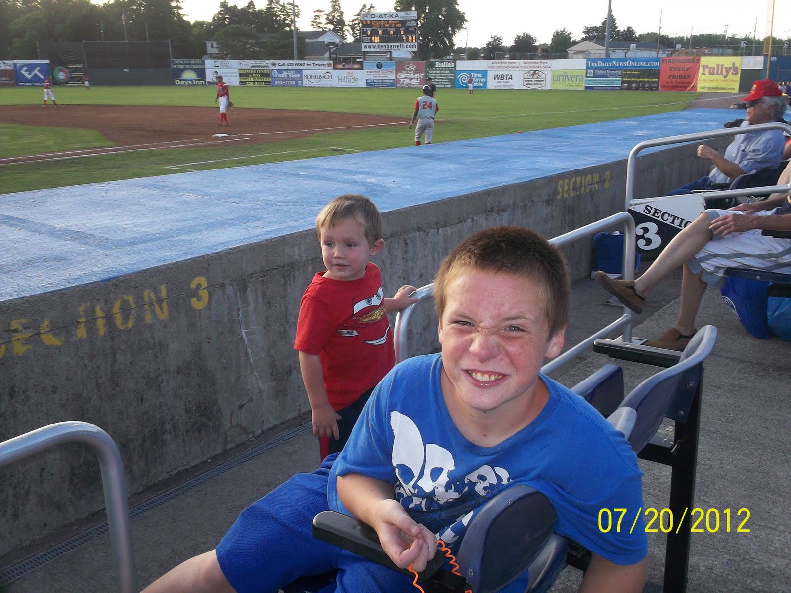 I'll be honest, I hate Single A baseball. I never liked it. I use to go alot and talk to everybody. Tonight was no different. There was TONS of people there and I barely sat down. Jonathan didn't want to watch and they just wanted to run all over. We got tickets for free...