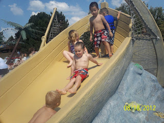 It was hot today so we went to Darien Lake to cool off. Somewhere in that mob was Andrew and they were waiting for the big bucket of water to fall on them