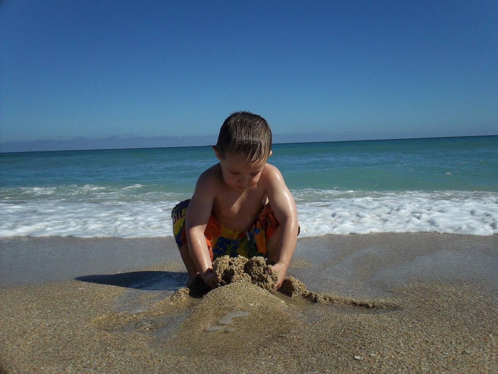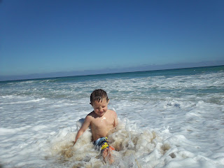 Both of them LOVED jumping the waves . Jonathan loves being by the shore and letting the waves hit him and toss him around. He didn't want to come out even though his teeth chattered and he was shaking