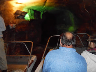 At the end . We stop when we hear the waterfalls. Jonathan liked this part and likes to talk about how the boat stops and there's a waterfalls.