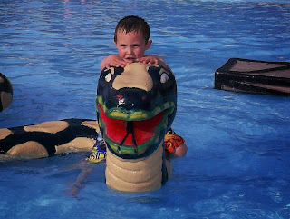 So after last weekend where it was so cold that we had to put the heat on, this Friday was steaming HOT and we are sweating like pigs. Where else to go to cool down but the waterpark. Yes I know there are only pics of Jonathan playing. Andrew was with a group playing in the gym and going swimming at the Y so he was having fun too. Our Bipolar weather continues!